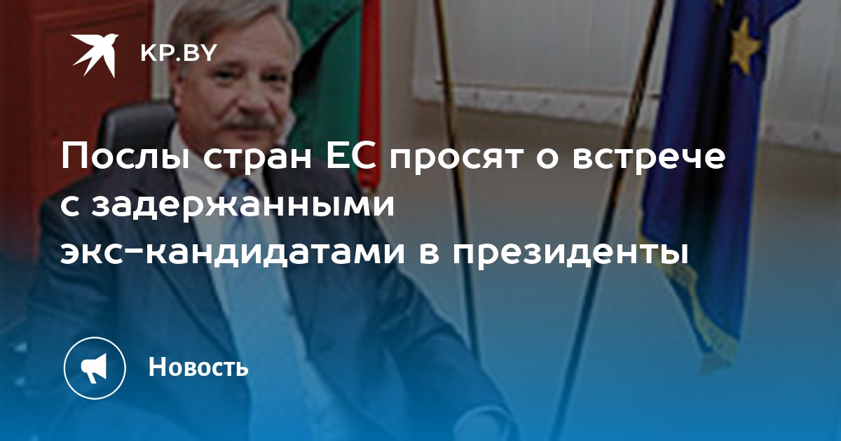 Как сообщает БелаПАН, послы стран Евросоюза просят о встрече с находящимися в СИЗО КГБ экс-кандидатами в президенты Беларуси. Сейчас там находятся Владимир Некляев, Андрей Санников, Николай Статкевич и Алесь Михалевич.